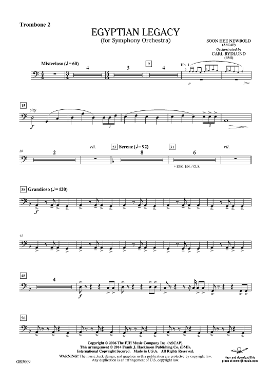 Digital Sheet Music for Egyptian Legacy - Trombone 2 by Soon Hee Newbold, Carl Rydlund scored for Orchestra; id:446862