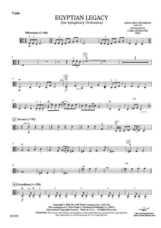 Digital Sheet Music for Egyptian Legacy - Viola by Soon Hee Newbold, Carl Rydlund scored for Orchestra; id:446872