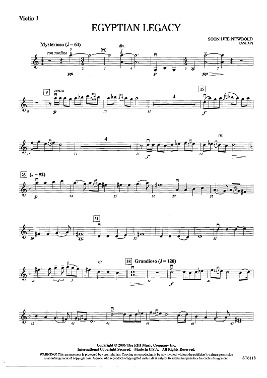 "Egyptian Legacy - Violin 1" Sheet Music by Soon Hee Newbold