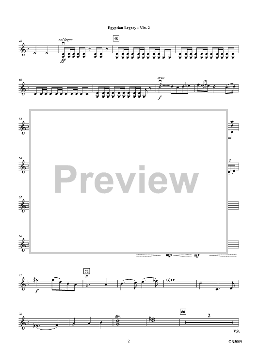 Digital Sheet Music for Egyptian Legacy - Violin 2 by Soon Hee Newbold, Carl Rydlund scored for Orchestra; id:446871