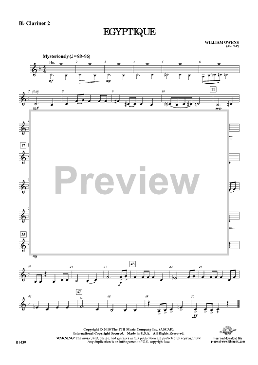 "Egyptique - Bb Clarinet 2" Sheet Music by William Owens