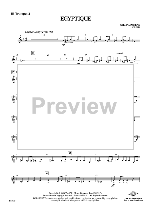 Digital Sheet Music for Egyptique - Bb Trumpet 2 by William Owens scored for Developing Band; id:415251