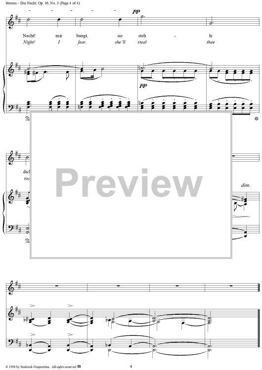 Digital Sheet Music for Eight Lieder, op. 10, no. 3: Nacht by Richard Strauss, Hermann von Gilm scored for Voice/Piano; id:95712