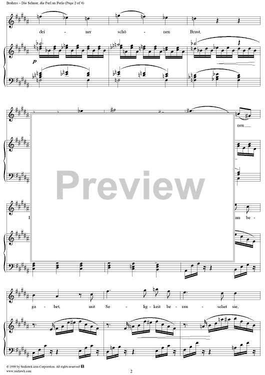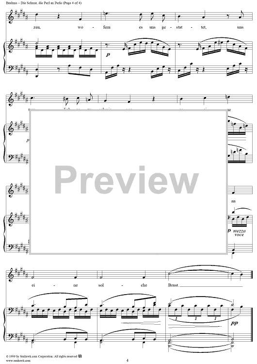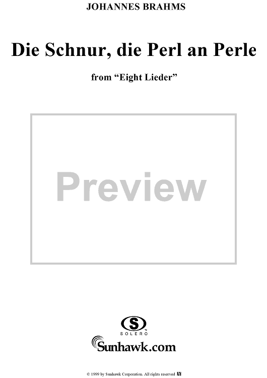 Digital Sheet Music for Eight Lieder, Op.57, No.7 Die Schnur, die Perl an Perle by Johannes Brahms scored for Voice/Piano; id:274698