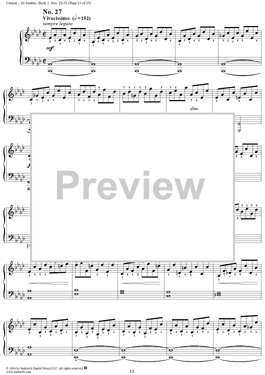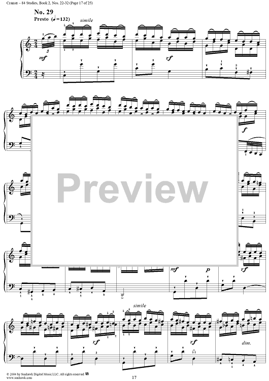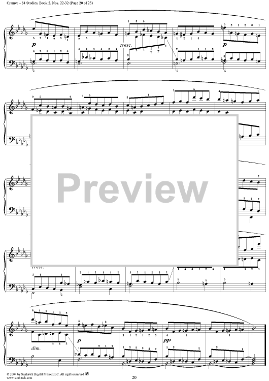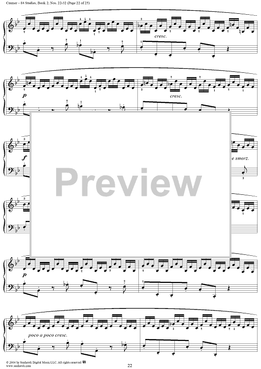 Digital Sheet Music for Eighty-Four Studies, Book II, Nos. 22-32 by Johann Baptist Cramer scored for Piano Solo; id:303740