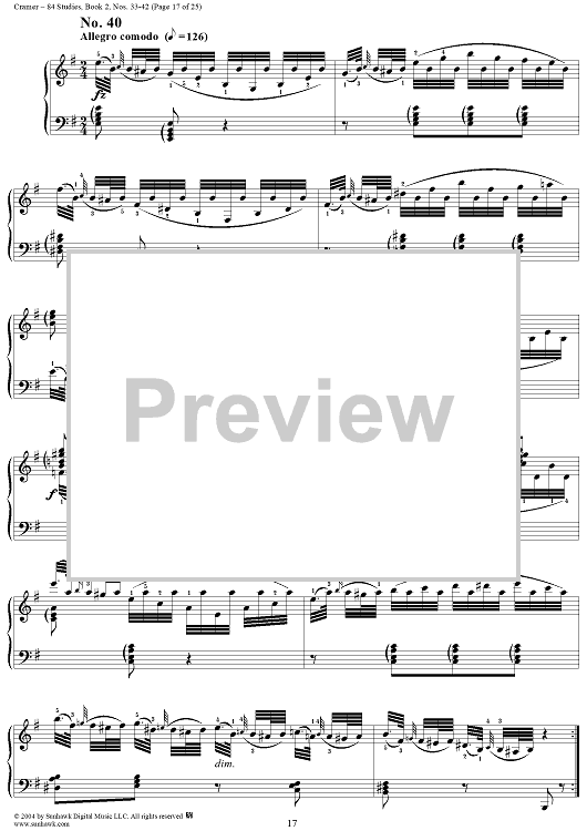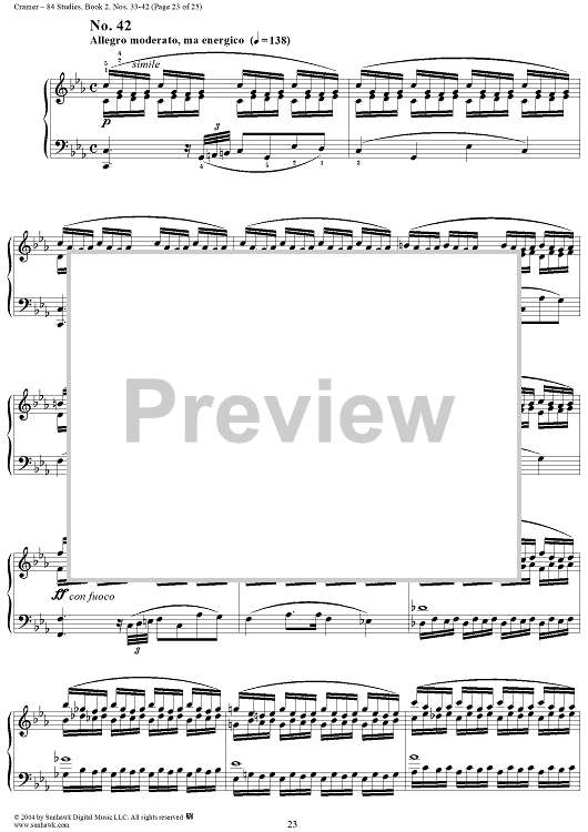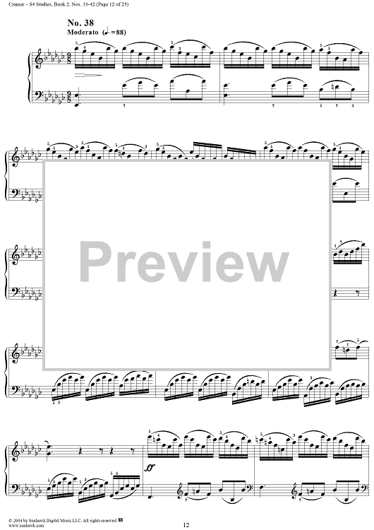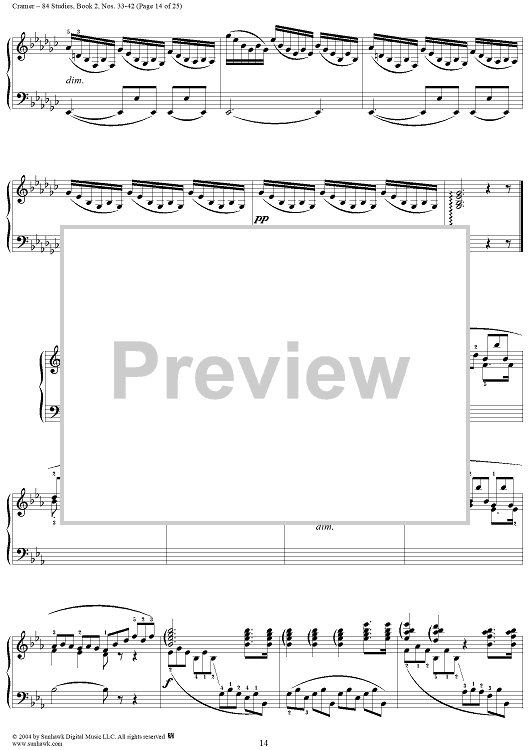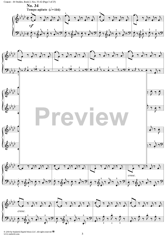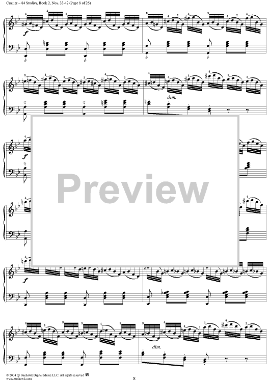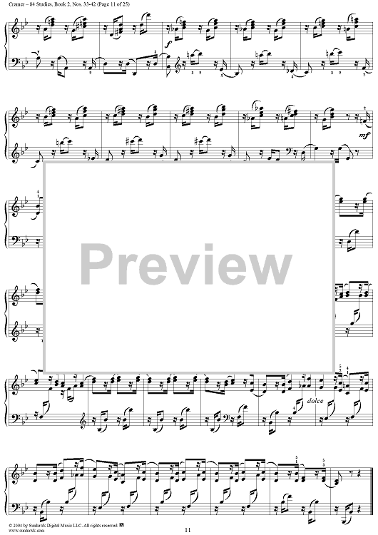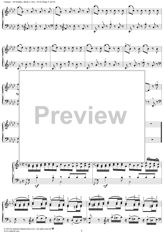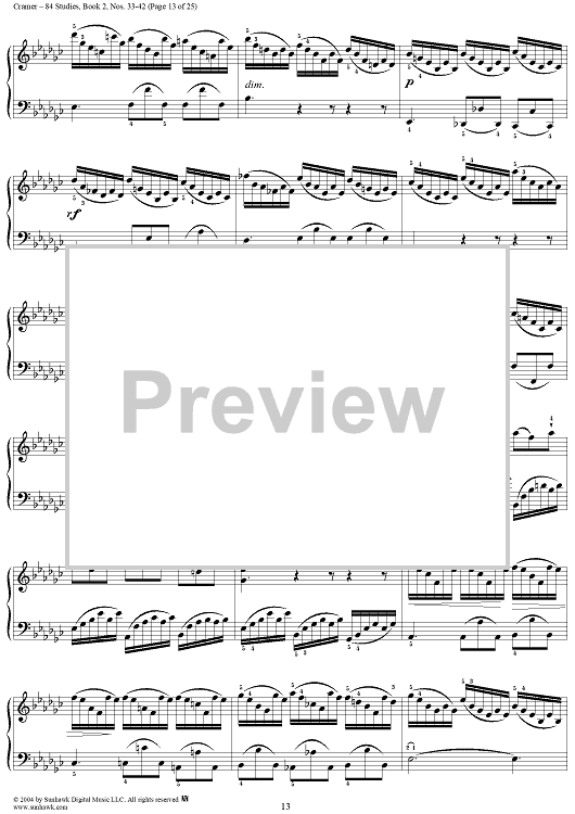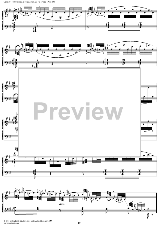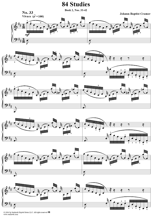 Digital Sheet Music for Eighty-Four Studies, Book II, Nos. 33-42 by Johann Baptist Cramer scored for Piano Solo; id:303741