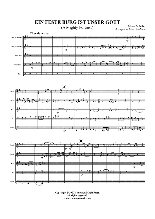 Digital Sheet Music for Ein feste Burg unser Gott - Score by Johann Pachelbel, Robert Madeson scored for Brass Quintet; id:365574