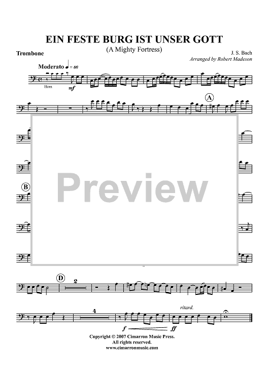 Digital Sheet Music for Ein feste Burg unser Gott - Trombone by Robert Madeson, Johann Sebastian Bach scored for Brass Quintet; id:365585