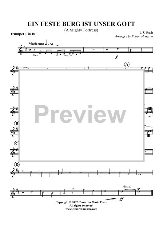 Digital Sheet Music for Ein feste Burg unser Gott - Trumpet 1 in B-flat by Robert Madeson, Johann Sebastian Bach scored for Brass Quintet; id:365582