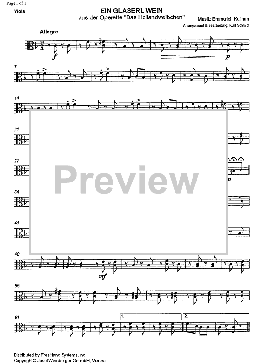 "Ein Glaserl Wein from Das Hollandweibchen - Viola" Sheet Music by Emmerich Kalman