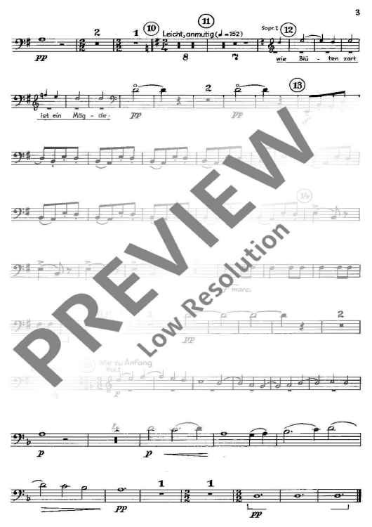 Digital Sheet Music for Ein heller Tag bricht an - Cello/double Bass by Richard Rudolf Klein scored for Youth Choir (smeza) With Instruments (flute [treble Recorder], 2 Violins, Cello); id:488673