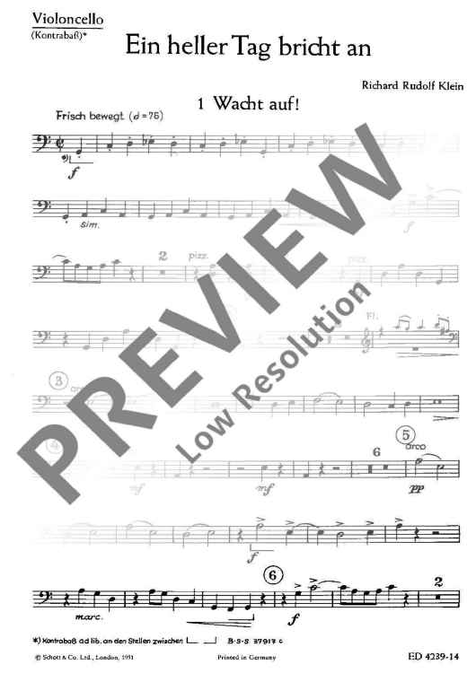 "Ein heller Tag bricht an - Cello/double Bass" Sheet Music by Richard Rudolf Klein
