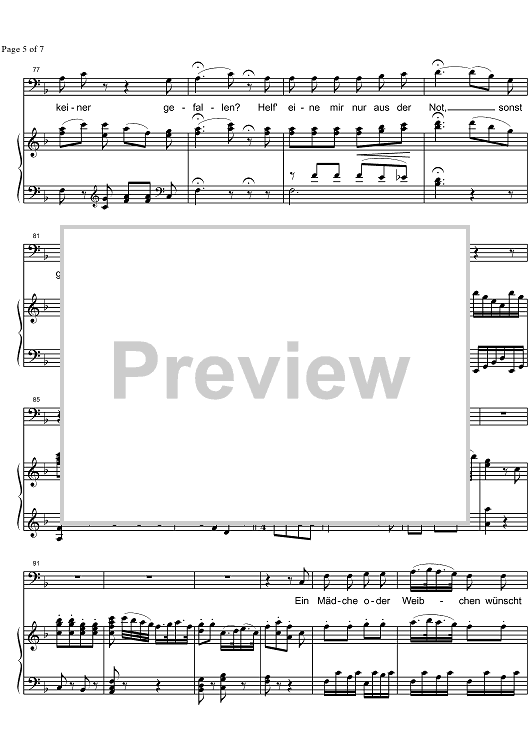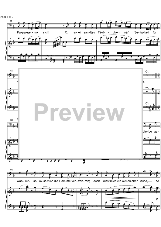 Digital Sheet Music for Ein Mädchen oder Weibchen from Die Zauberflöte KV620 by Wolfgang Amadeus Mozart, SMN Archive Collection scored for Baritone/Piano; id:323860
