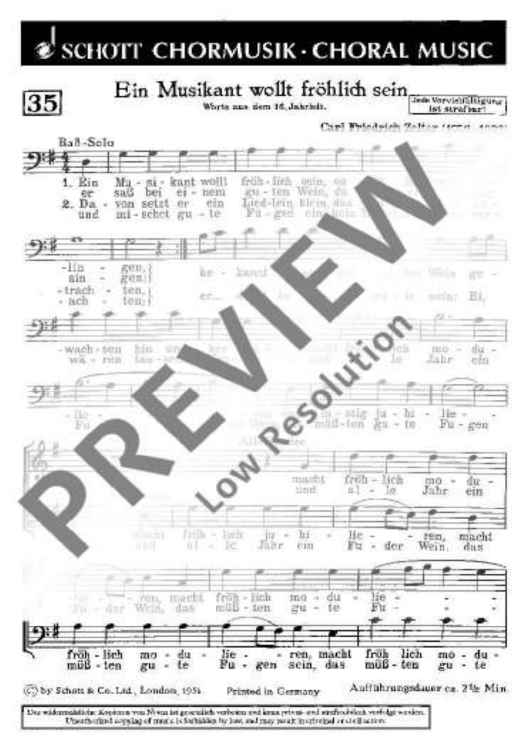 Digital Sheet Music for Ein Musikant wollt fröhlich sein - Choral Score by Carl Friedrich Zelter scored for Men's Choir (ttbb); id:471914
