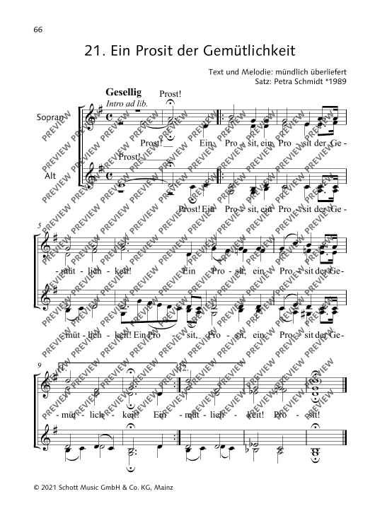 Digital Sheet Music for Ein Prosit Der Gemütlichkeit by Petra Schmidt scored for Female Choir (ssaa) A Cappella; id:496379