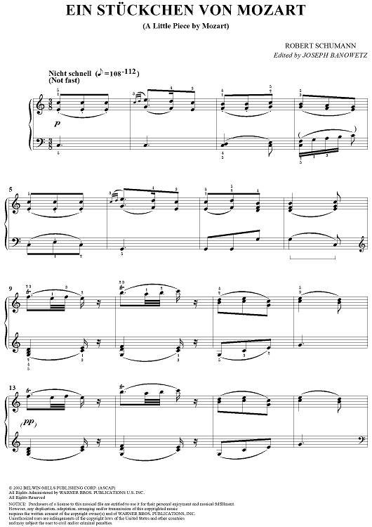 "Ein Stückchen von Mozart (A Little Piece by Mozart)" Sheet Music by Robert Schumann