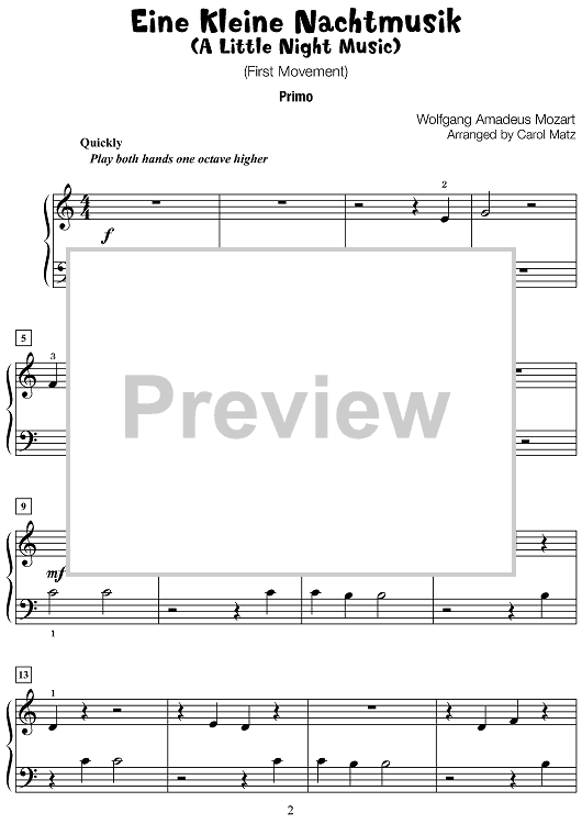 Digital Sheet Music for Eine Kleine Nachtmusik by Wolfgang Amadeus Mozart, Carol Matz scored for 1 Piano, 4 Hands; id:496851