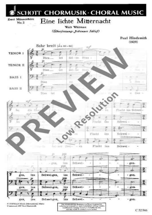 Digital Sheet Music for Eine lichte Mitternacht - Choral Score by Paul Hindemith scored for Men's Choir (ttbb); id:471544