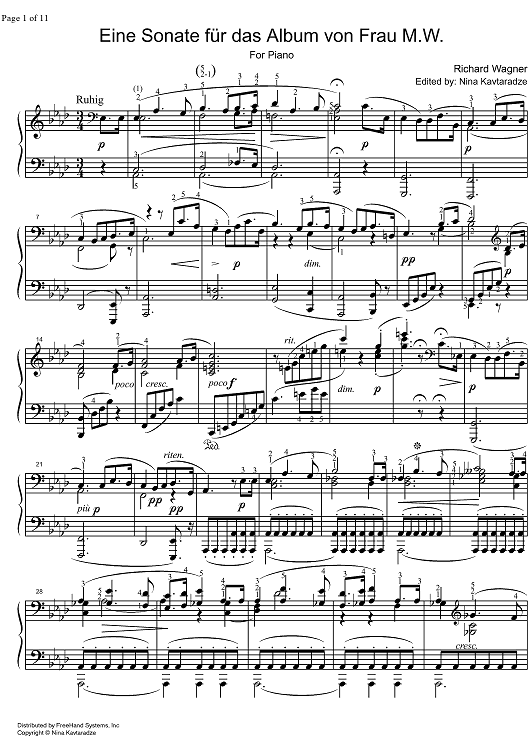 Digital Sheet Music for Eine Sonate für das Album von Frau M.W. - Piano by , Richard Wagner scored for Piano Solo; id:328673