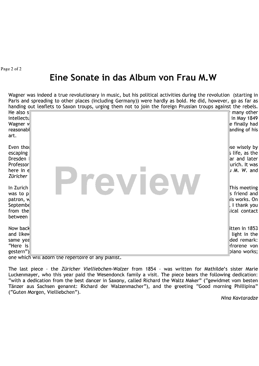 "Eine Sonate für das Album von Frau M.W. - Preface" Sheet Music by Richard Wagner