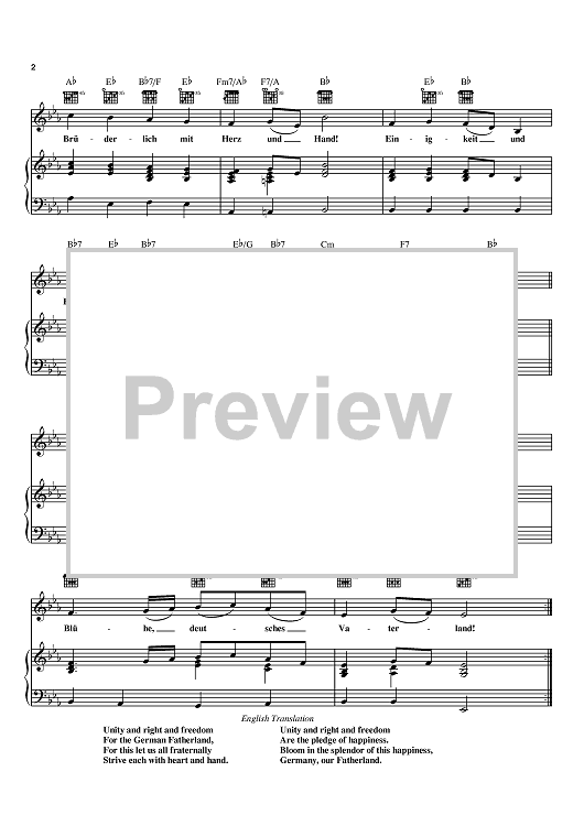 Digital Sheet Music for Einigkeit Und Recht Und Freiheit by Franz Joseph Haydn, August Heinrich Hoffmann von Fallersleben scored for Piano/Vocal/Chords; id:368342