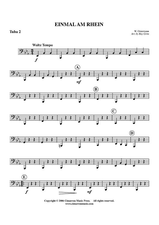 Digital Sheet Music for Einmal Am Rhein - Tuba 2 by Ray Grim, Willi Ostermann scored for Tuba Quartet; id:357388