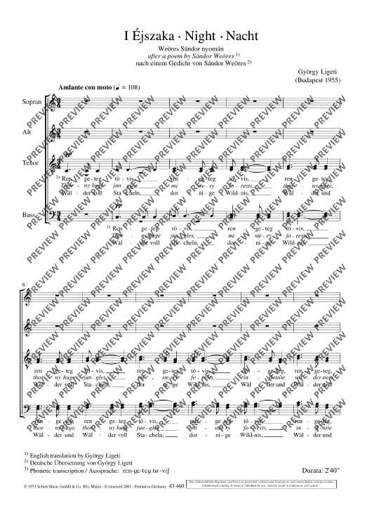 Digital Sheet Music for Éjszaka by György Ligeti scored for Mixed Choir; id:498521