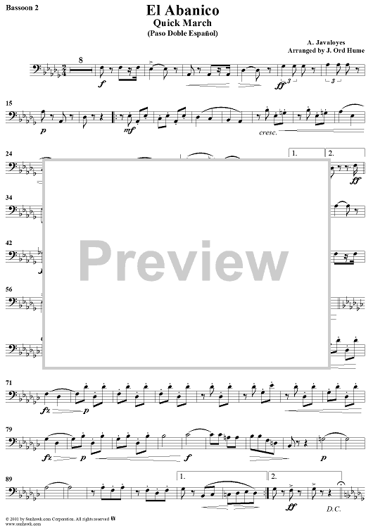 Digital Sheet Music for El Abanico - Bassoon 2 by A. Javaloyes, J. Ord Hume scored for Concert Band; id:282545