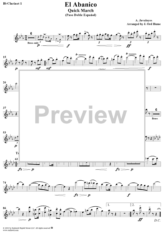 Digital Sheet Music for El Abanico - Clarinet 1 by A. Javaloyes, J. Ord Hume scored for Concert Band; id:282537