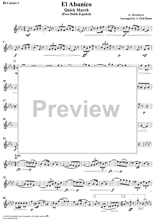 Digital Sheet Music for El Abanico - Cornet 1 by A. Javaloyes, J. Ord Hume scored for Concert Band; id:282560