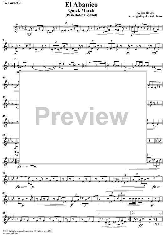 Digital Sheet Music for El Abanico - Cornet 2 by A. Javaloyes, J. Ord Hume scored for Concert Band; id:282550