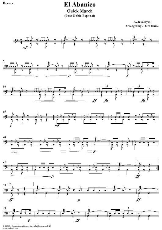 Digital Sheet Music for El Abanico - Drums by A. Javaloyes, J. Ord Hume scored for Concert Band; id:282552