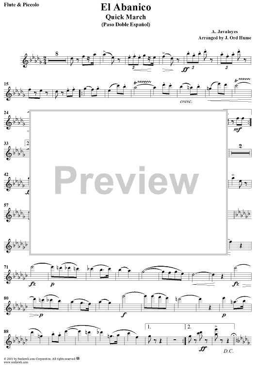 Digital Sheet Music for El Abanico - Flute & Piccolo by A. Javaloyes, J. Ord Hume scored for Concert Band; id:282553