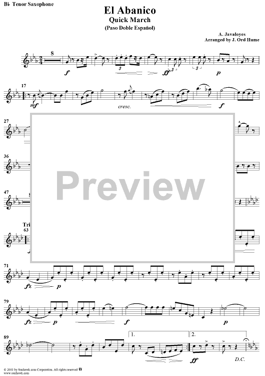 Digital Sheet Music for El Abanico - Tenor Saxophone by A. Javaloyes, J. Ord Hume scored for Concert Band; id:282563