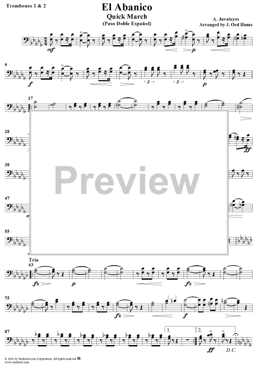Digital Sheet Music for El Abanico - Trombones 1 & 2 by A. Javaloyes, J. Ord Hume scored for Concert Band; id:282555
