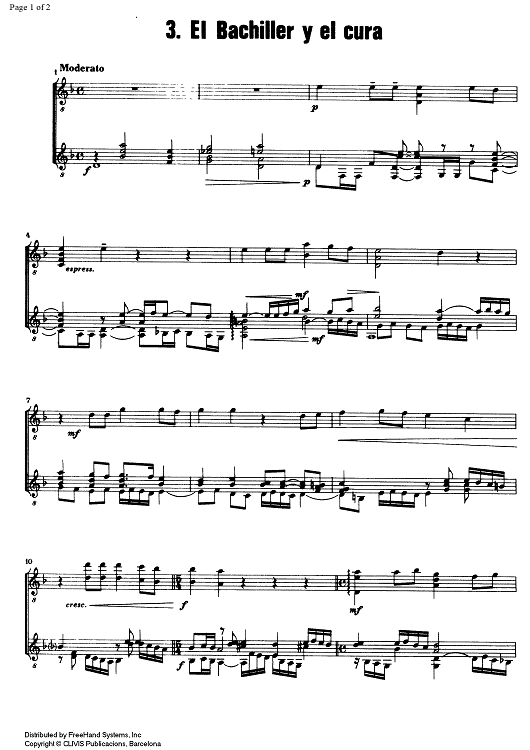 Digital Sheet Music for El Bachiller y el cura by , Francisco Fleta Polo scored for Guitar Duo; id:353294