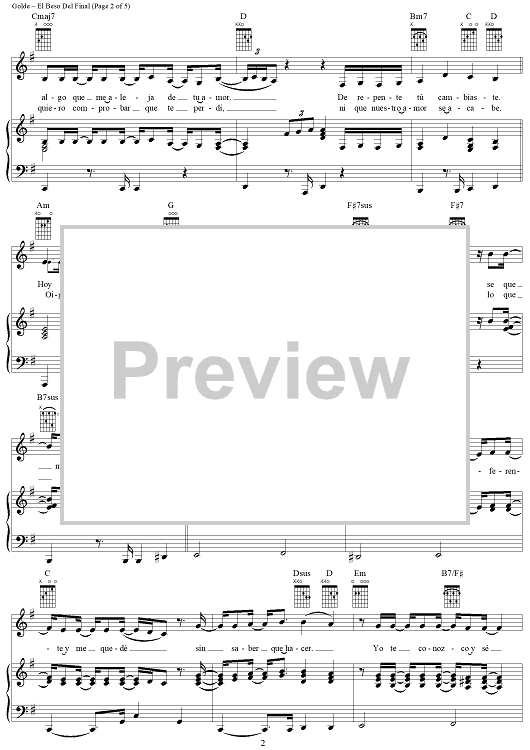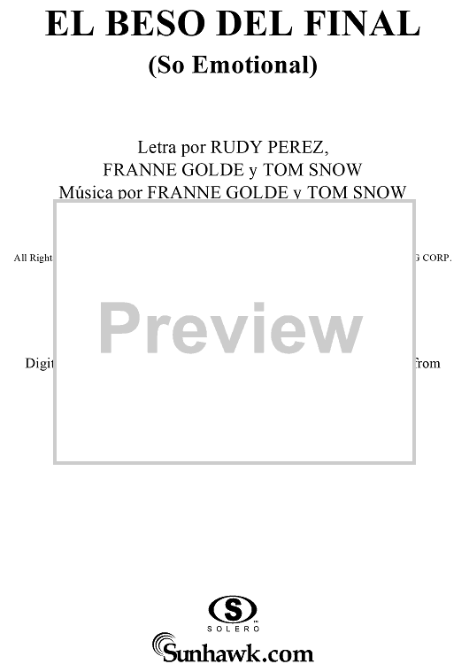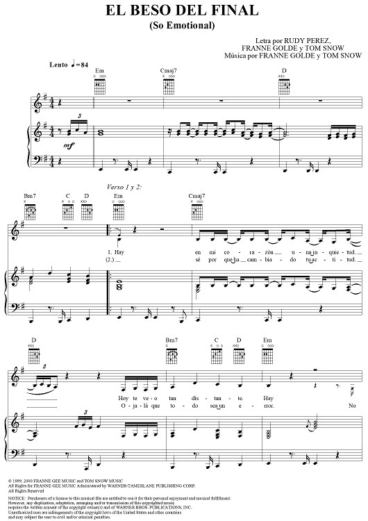 Digital Sheet Music for El Beso Del Final by Tom Snow, Franne Golde, Rudy Perez, Christina Aguilera scored for Piano/Vocal/Chords; id:285431