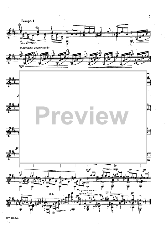 Digital Sheet Music for El Canario by Mario Castelnuovo-Tedesco scored for Guitar; id:423188