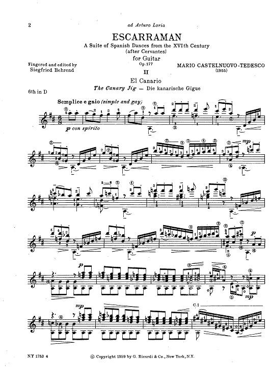 "El Canario" Sheet Music by Mario Castelnuovo-Tedesco
