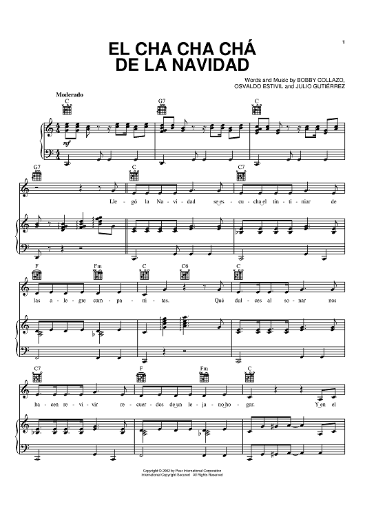 Digital Sheet Music for El Cha Cha Chá De La Navidad by Julio Gutiérrez, Bobby Collazo, Osvaldo Estivil scored for Piano/Vocal/Chords; id:369805
