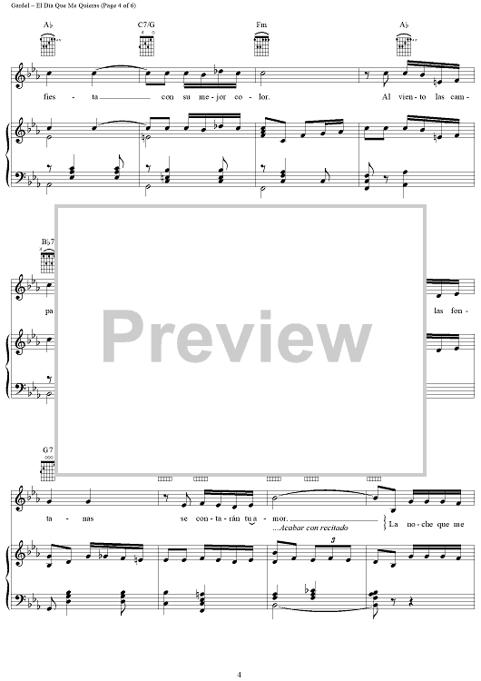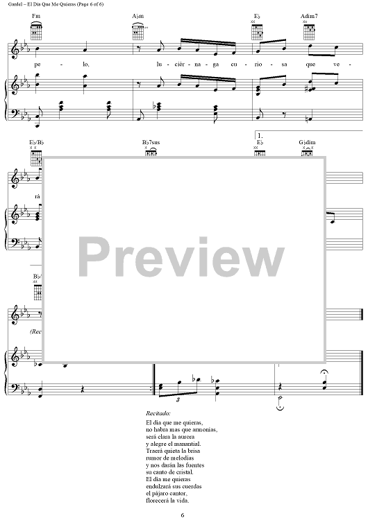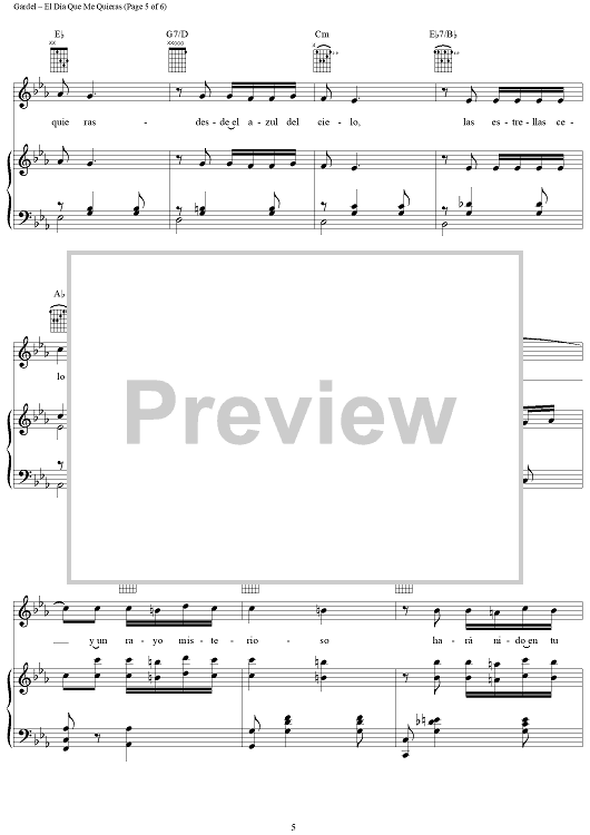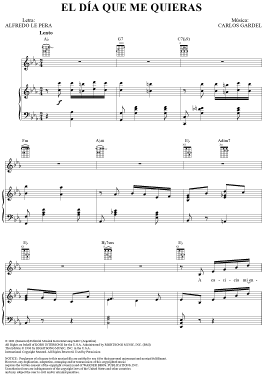 Digital Sheet Music for El Día Que Me Quieras by Carlos Gardel, Luis Miguel, Alfredo Le Pera scored for Piano/Vocal/Chords; id:307422