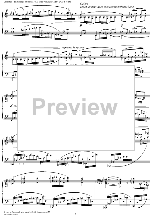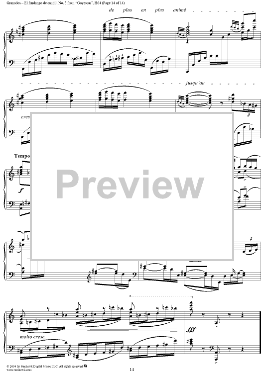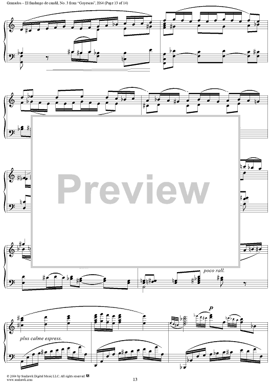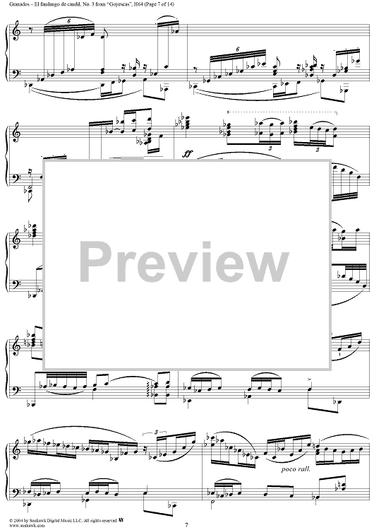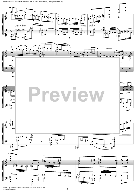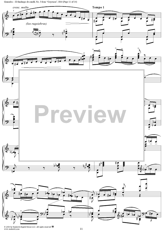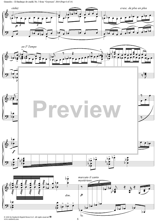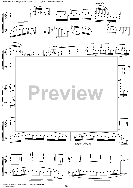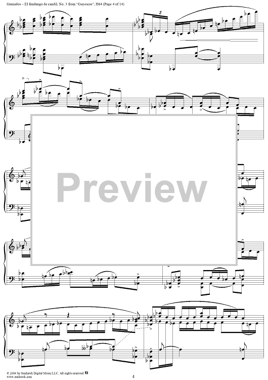 Digital Sheet Music for El fandango de candil, No. 3 from "Goyescas", H64 by Enrique Granados scored for Piano Solo; id:296126