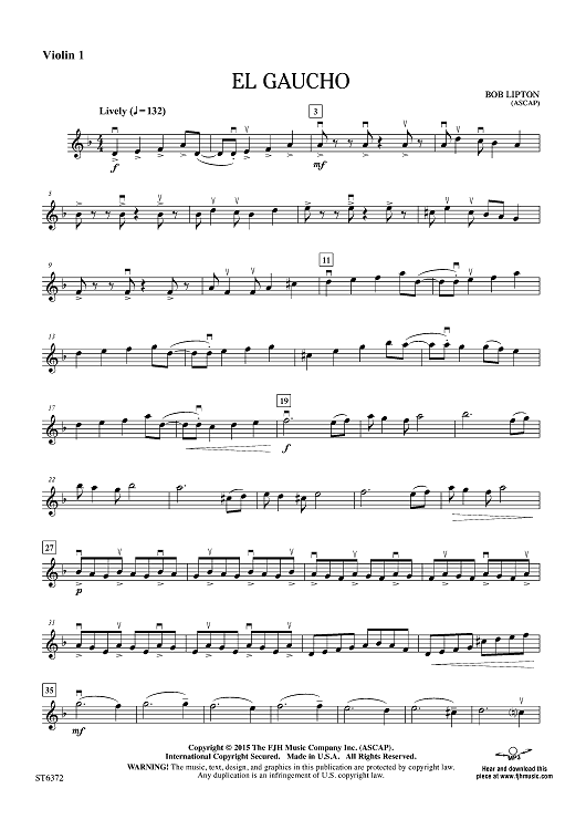 Digital Sheet Music for El Gaucho - Violin 1 by Bob Lipton scored for Orchestra; id:455563