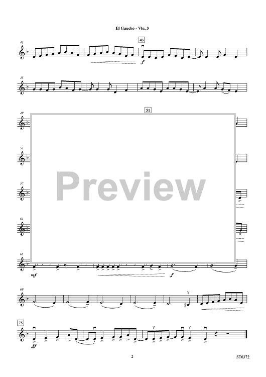 Digital Sheet Music for El Gaucho - Violin 3 (Viola T.C.) by Bob Lipton scored for Orchestra; id:455565
