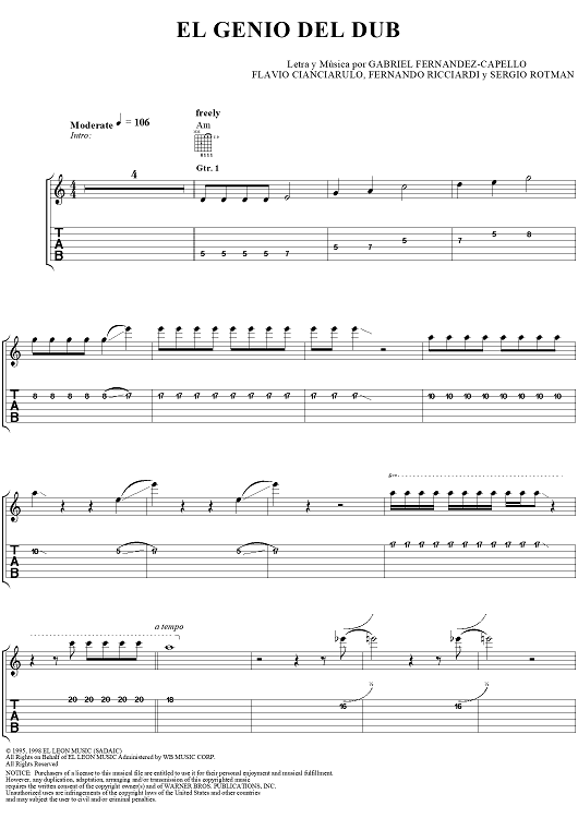 "El Genio del Dub" Sheet Music by Los Fabulosos Cadillacs