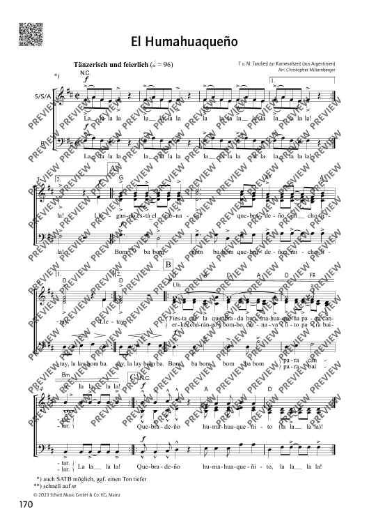 Digital Sheet Music for El Humahuaqueño by Christopher Miltenberger scored for School Choir, Mixed Choir (ssab); id:500601