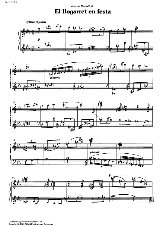Digital Sheet Music for El llogarret en fest (from De les terres altes) - Piano by , Xavier Gols i Soler scored for Piano Solo; id:353482