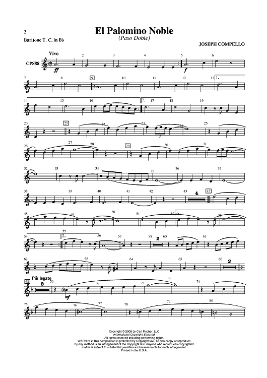 Digital Sheet Music for El Palamino Noble - Baritone (Treble Clef) by Joseph Compello scored for Concert Band; id:405615