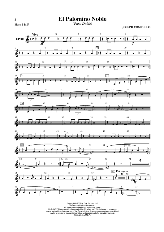Digital Sheet Music for El Palamino Noble - Horn 1 in F by Joseph Compello scored for Concert Band; id:405623