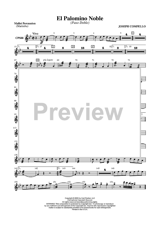 Digital Sheet Music for El Palamino Noble - Mallet Percussion by Joseph Compello scored for Concert Band; id:405625
